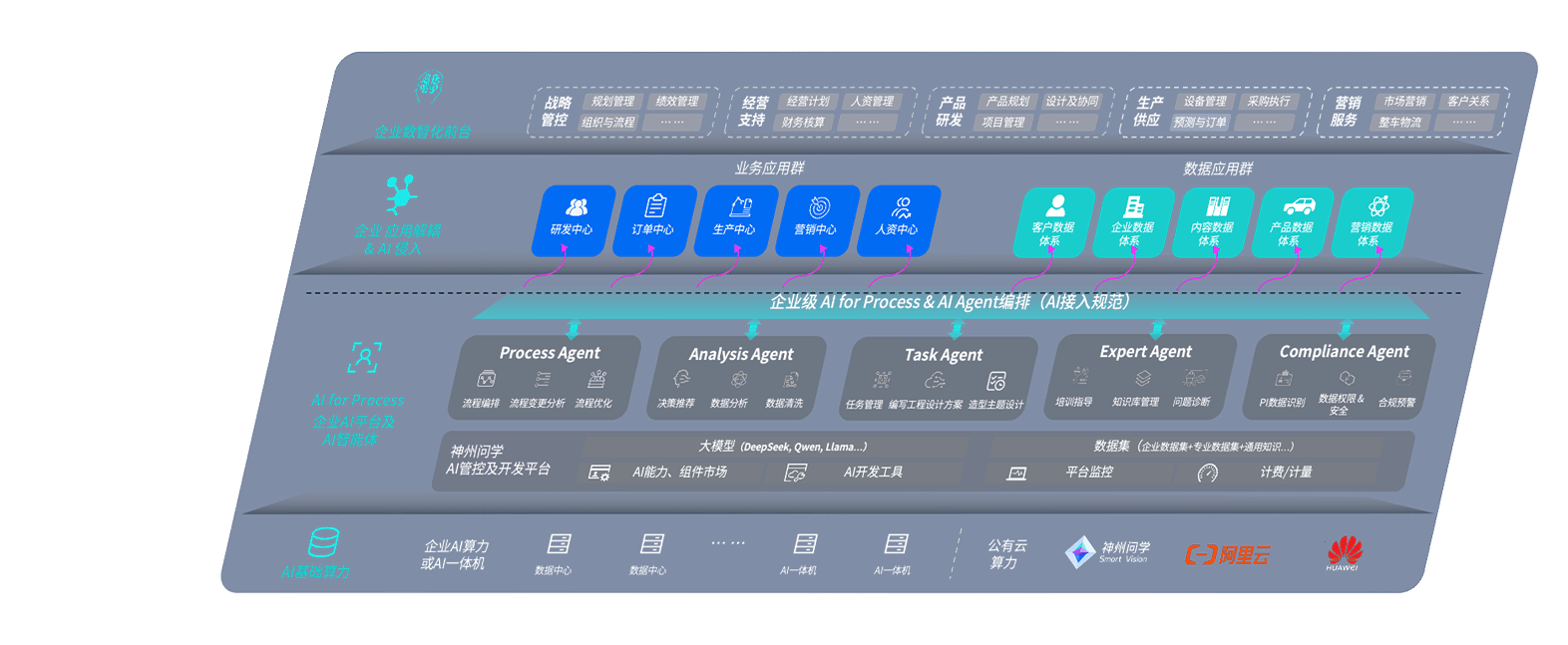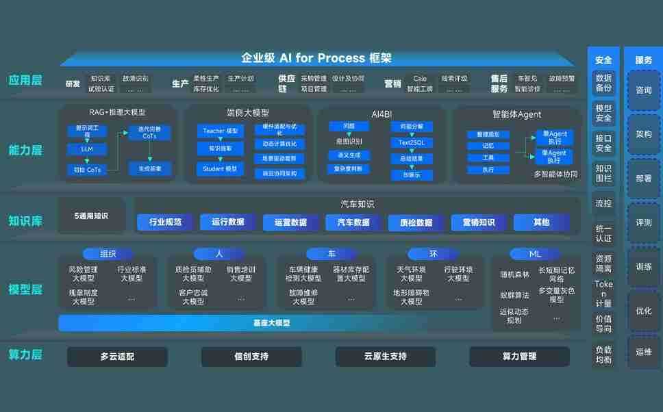 端到端的一站式AI工作空间深度融合了从企业战略规划到日常经营的全流程业务板块,,定向解决车企内部领域多、、、部门多、、链条长、、、场景碎片化等难题,,,,支持车企快速构建以AI为核心的生产力写作体系,,,实现任务执行与AI能力的无缝集成与交互